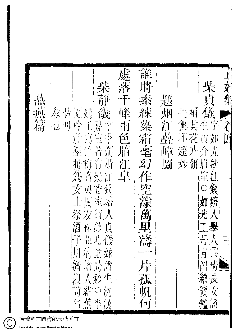 | 原書: 國朝閨秀正始集﹕二十卷﹐附錄﹕一卷﹐補遺﹕一卷﹐又附題詞﹕一卷(清惲珠輯) |