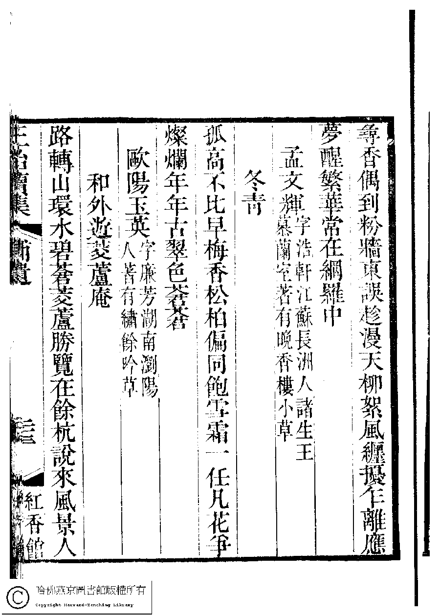 | 原書: 國朝閨秀正始續集﹕十卷﹐附錄﹕一卷﹐補遺﹕一卷﹐輓詞﹕一卷(清惲珠輯) |