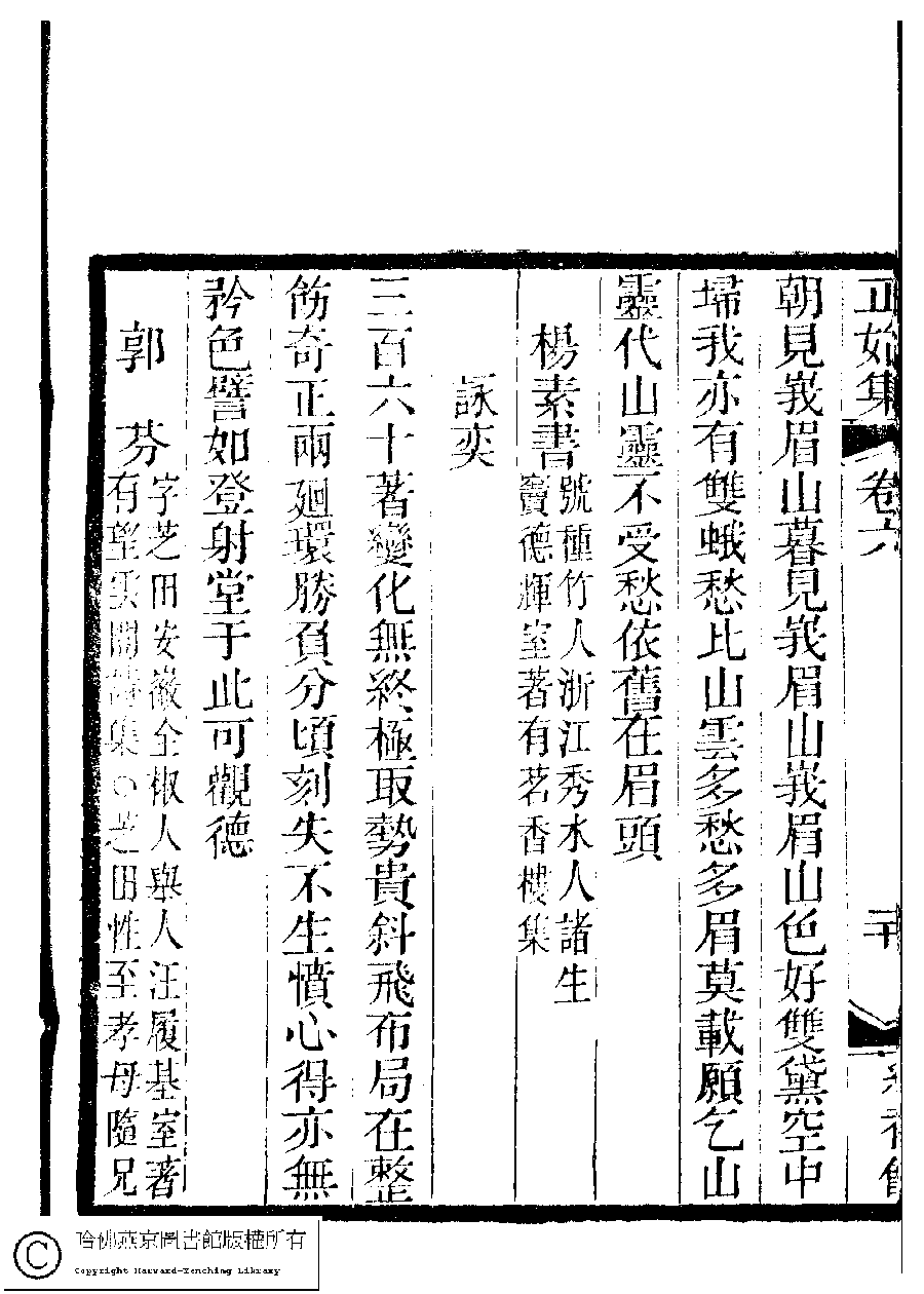 | 原書: 國朝閨秀正始集﹕二十卷﹐附錄﹕一卷﹐補遺﹕一卷﹐又附題詞﹕一卷(清惲珠輯) |