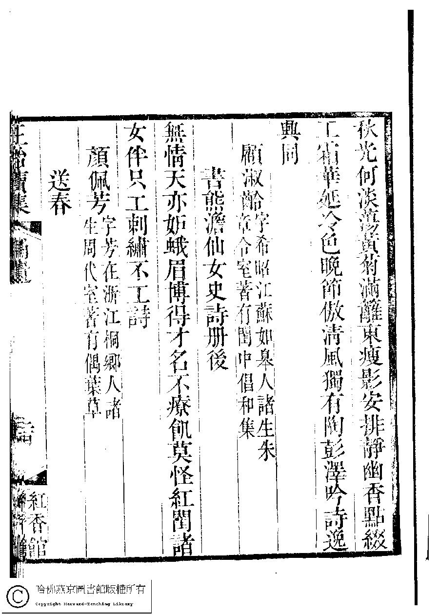| 原書: 國朝閨秀正始續集﹕十卷﹐附錄﹕一卷﹐補遺﹕一卷﹐輓詞﹕一卷(清惲珠輯) |