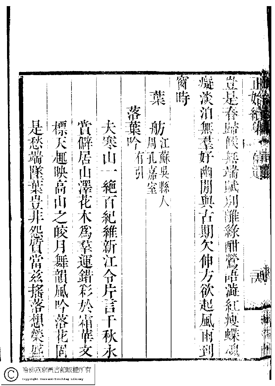 | 原書: 國朝閨秀正始續集﹕十卷﹐附錄﹕一卷﹐補遺﹕一卷﹐輓詞﹕一卷(清惲珠輯) |