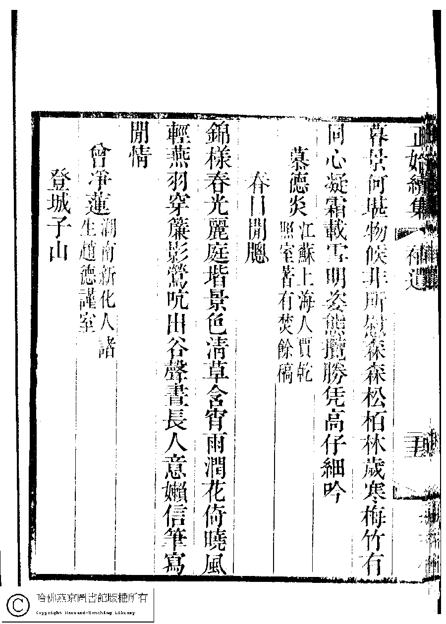 | 原書: 國朝閨秀正始續集﹕十卷﹐附錄﹕一卷﹐補遺﹕一卷﹐輓詞﹕一卷(清惲珠輯) |
