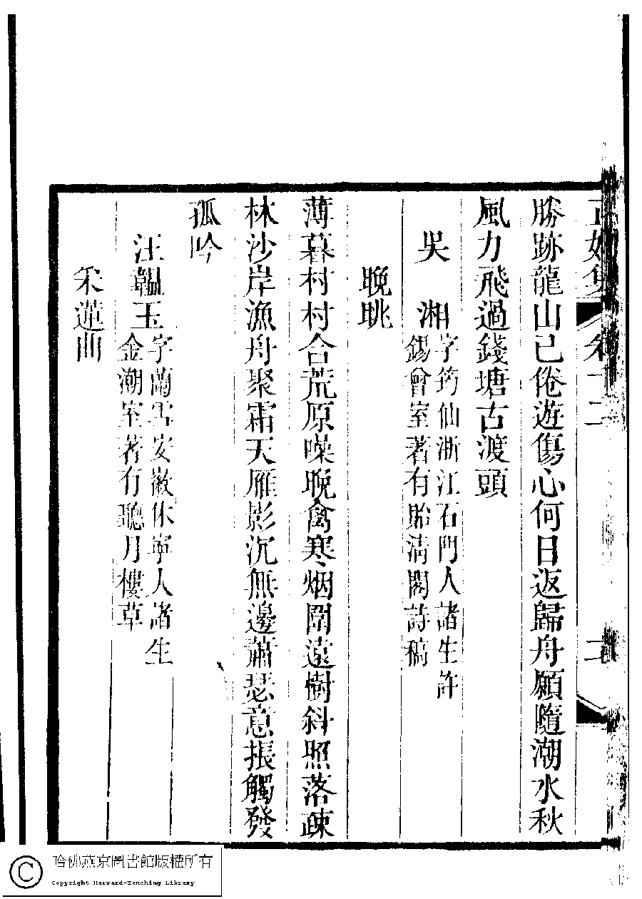 | 原書: 國朝閨秀正始集﹕二十卷﹐附錄﹕一卷﹐補遺﹕一卷﹐又附題詞﹕一卷(清惲珠輯) |