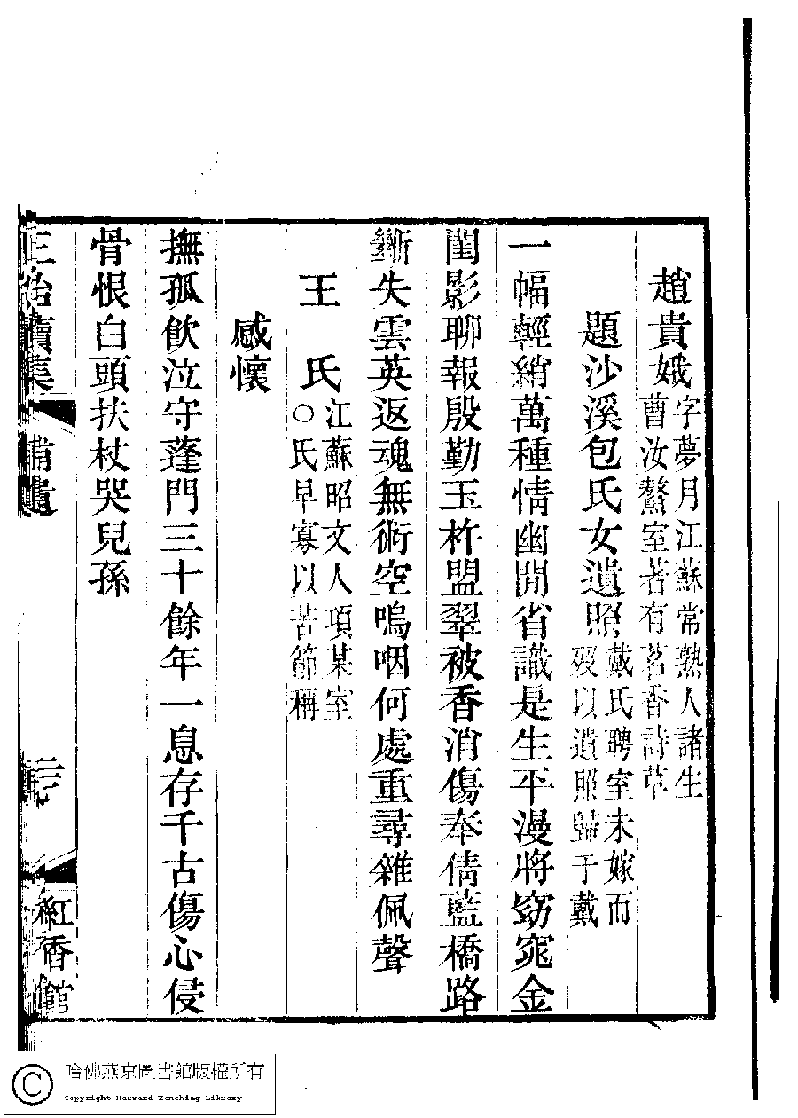 | 原書: 國朝閨秀正始續集﹕十卷﹐附錄﹕一卷﹐補遺﹕一卷﹐輓詞﹕一卷(清惲珠輯) |