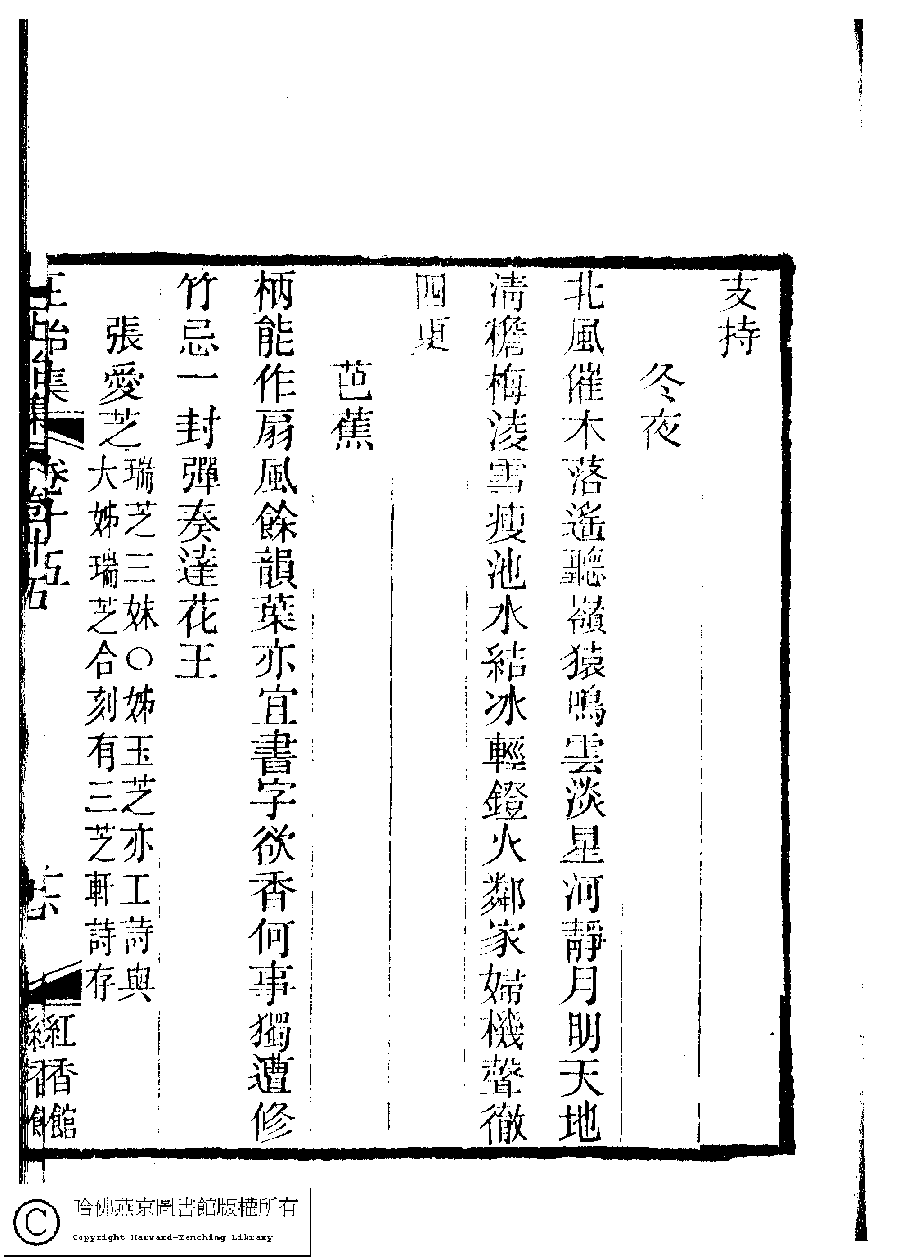 | 原書: 國朝閨秀正始集﹕二十卷﹐附錄﹕一卷﹐補遺﹕一卷﹐又附題詞﹕一卷(清惲珠輯) |