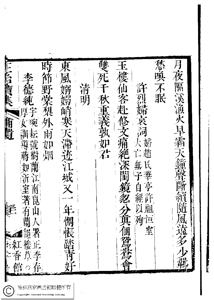 | 原書: 國朝閨秀正始續集﹕十卷﹐附錄﹕一卷﹐補遺﹕一卷﹐輓詞﹕一卷(清惲珠輯) |