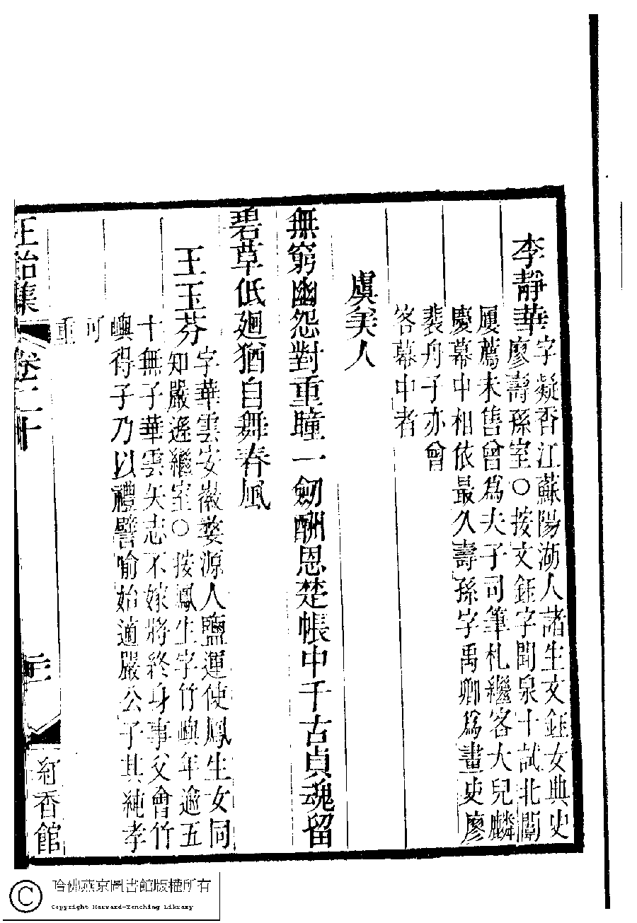 | 原書: 國朝閨秀正始集﹕二十卷﹐附錄﹕一卷﹐補遺﹕一卷﹐又附題詞﹕一卷(清惲珠輯) |