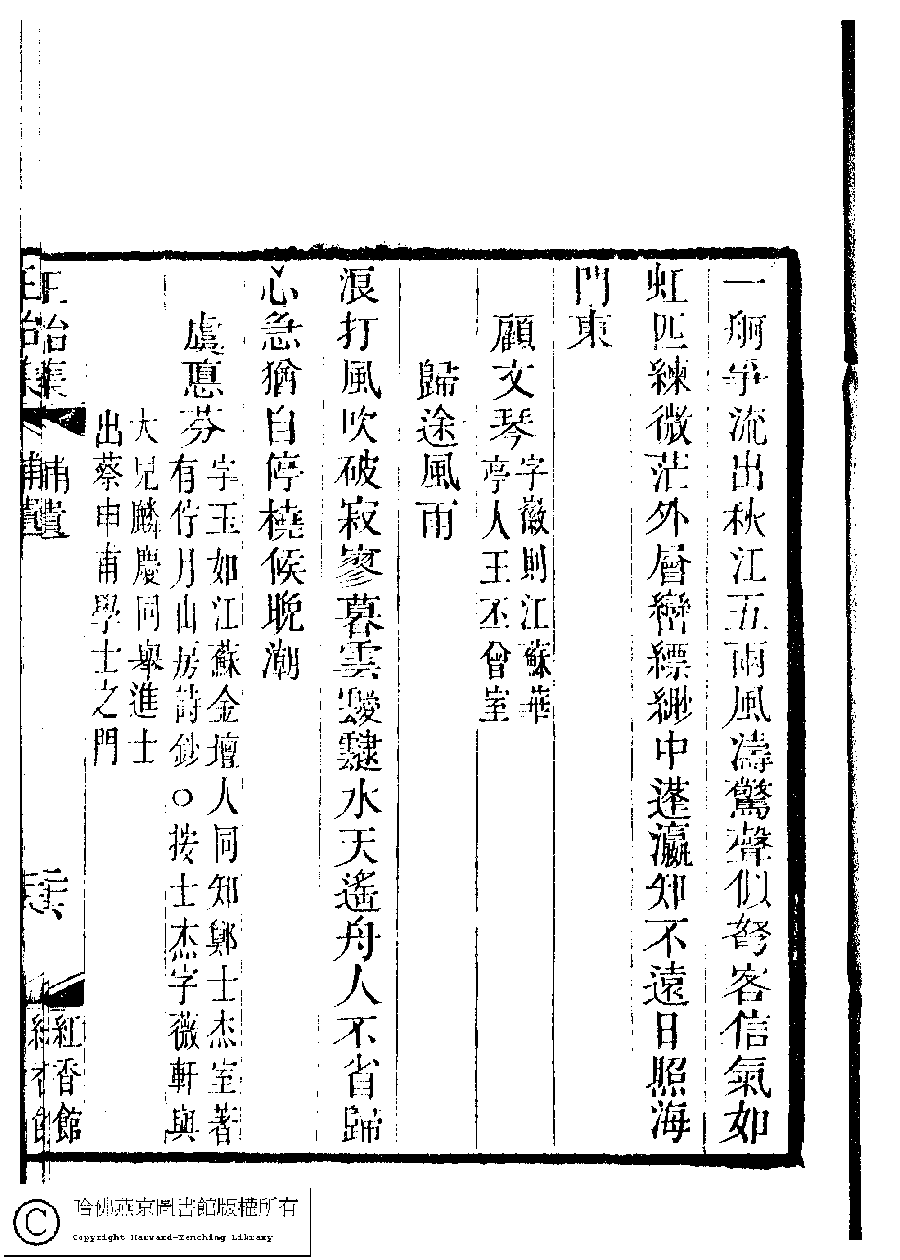 | 原書: 國朝閨秀正始集﹕二十卷﹐附錄﹕一卷﹐補遺﹕一卷﹐又附題詞﹕一卷(清惲珠輯) |