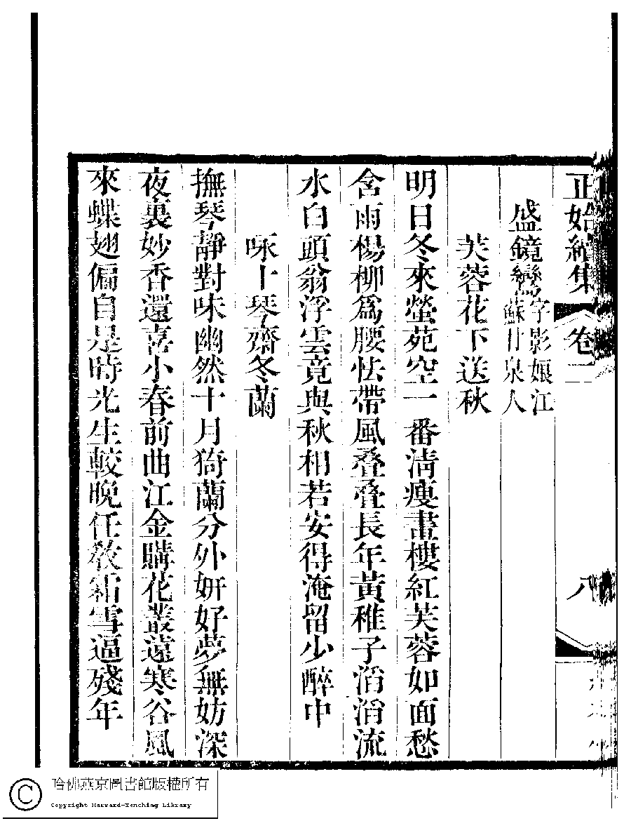 | 原書: 國朝閨秀正始續集﹕十卷﹐附錄﹕一卷﹐補遺﹕一卷﹐輓詞﹕一卷(清惲珠輯) |