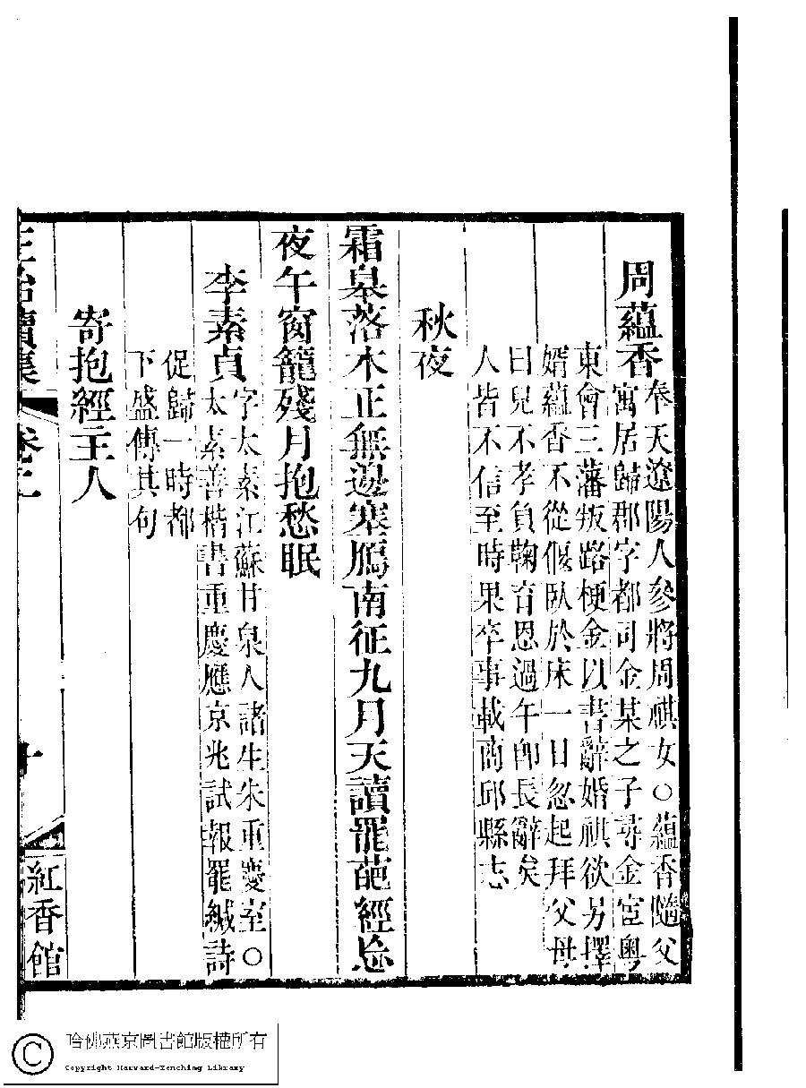 | 原書: 國朝閨秀正始續集﹕十卷﹐附錄﹕一卷﹐補遺﹕一卷﹐輓詞﹕一卷(清惲珠輯) |