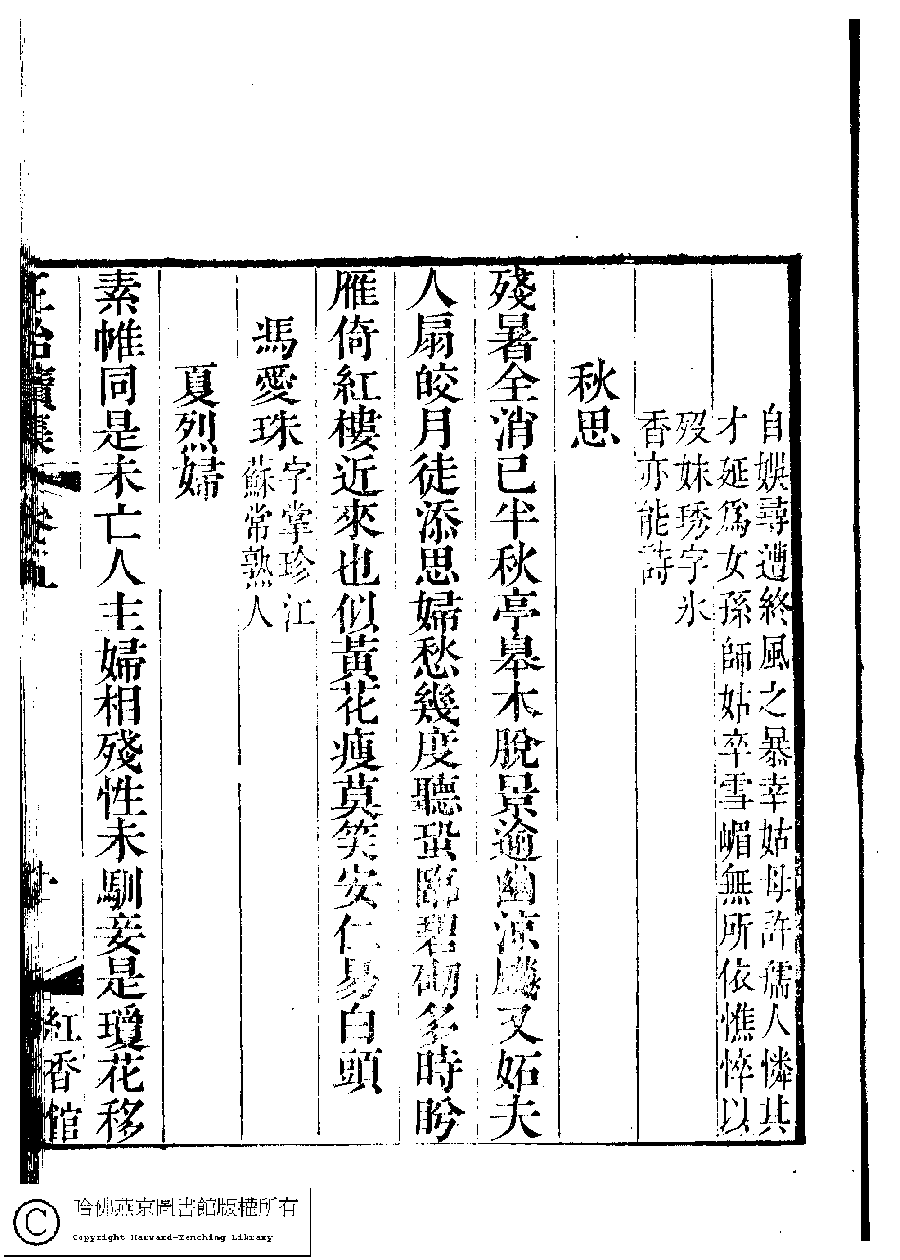 | 原書: 國朝閨秀正始續集﹕十卷﹐附錄﹕一卷﹐補遺﹕一卷﹐輓詞﹕一卷(清惲珠輯) |