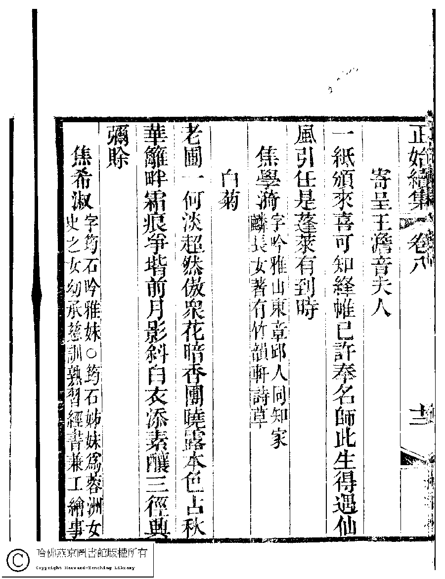 | 原書: 國朝閨秀正始續集﹕十卷﹐附錄﹕一卷﹐補遺﹕一卷﹐輓詞﹕一卷(清惲珠輯) |
