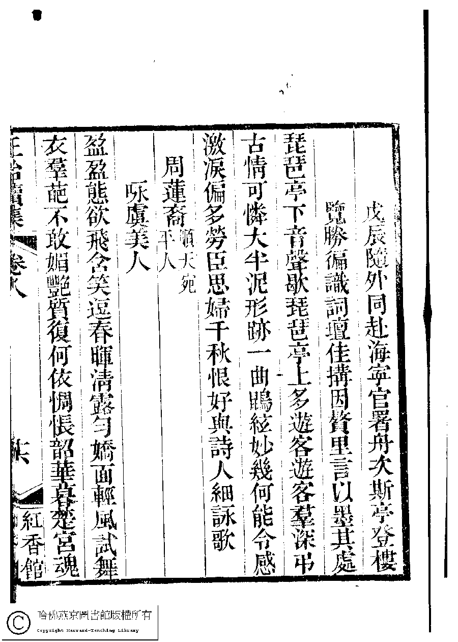 | 原書: 國朝閨秀正始續集﹕十卷﹐附錄﹕一卷﹐補遺﹕一卷﹐輓詞﹕一卷(清惲珠輯) |