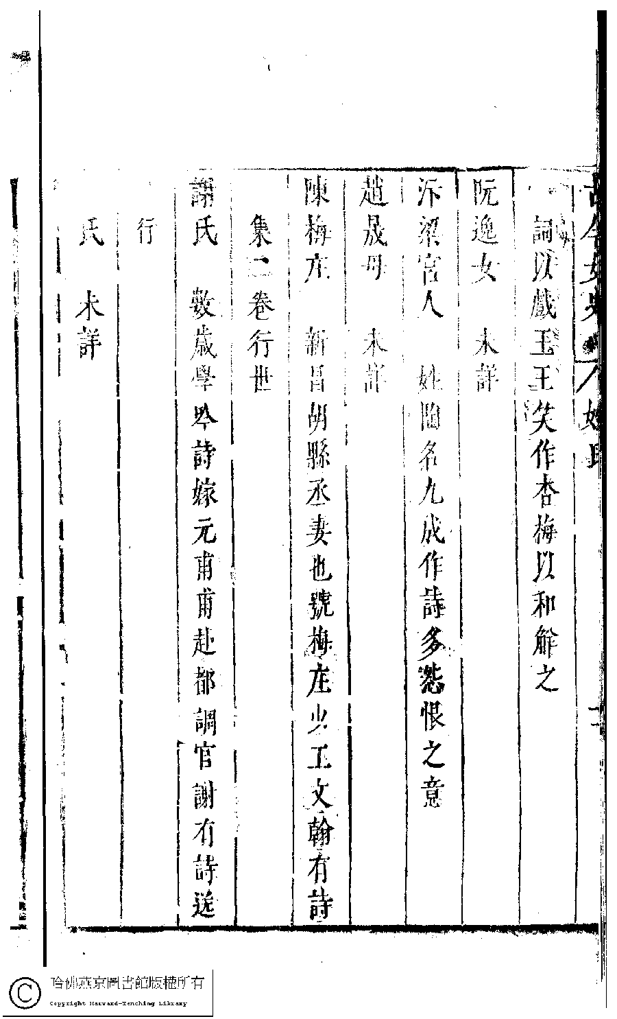 | 原書: 古今女史﹕十二卷﹐詩集﹕八卷﹐附姓氏字里詳節﹕一卷(明趙世杰輯) |