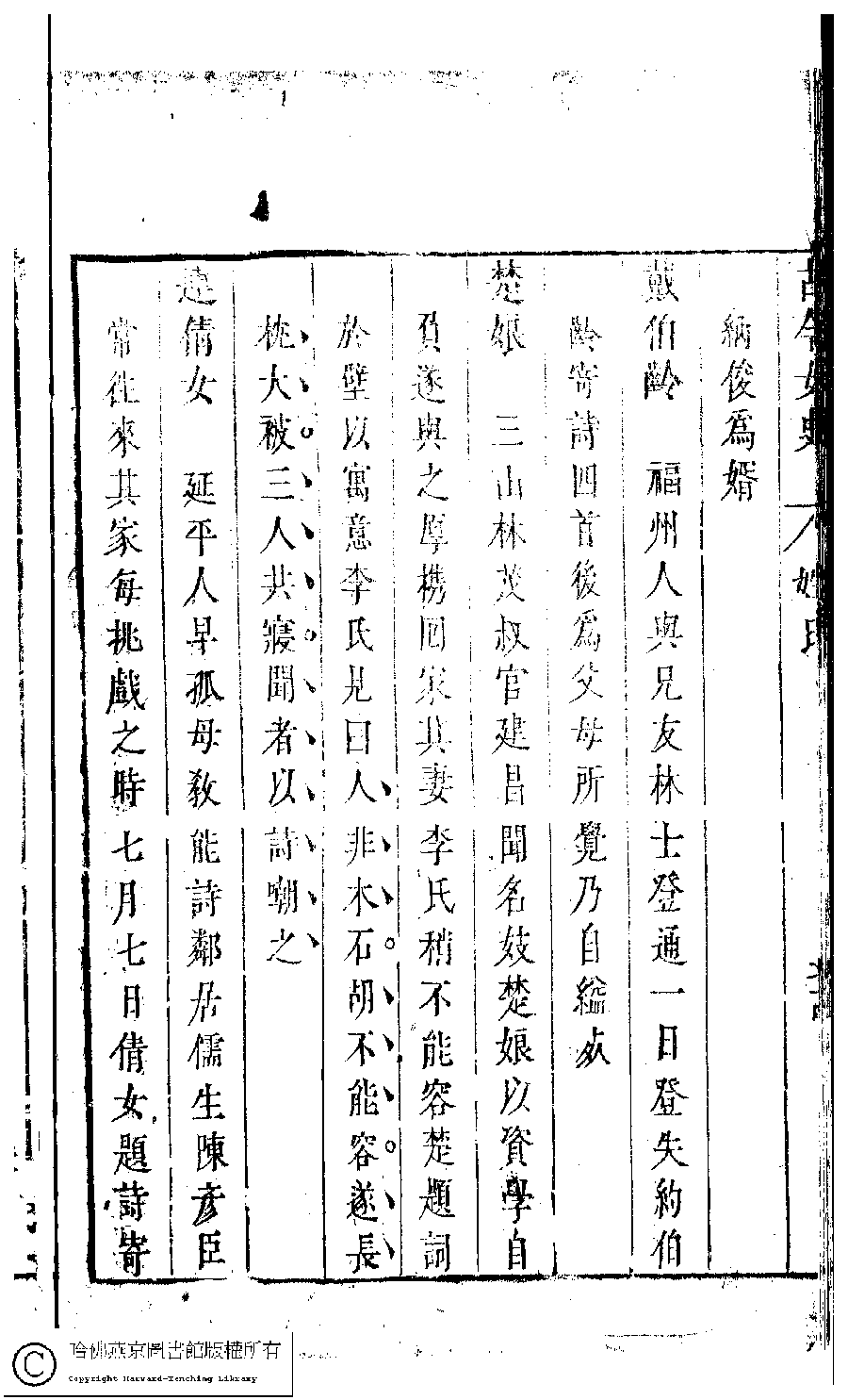 | (PRINT FRIENDLY VERSION) 古今女史﹕十二卷﹐詩集﹕八卷﹐附姓氏字里詳節﹕一卷(明趙世杰輯)。明崇禎(1628-1644)問奇閣刻本 ![]() 頁碼 : 姓氏.75b | 点 击 放 大 | 返回 |