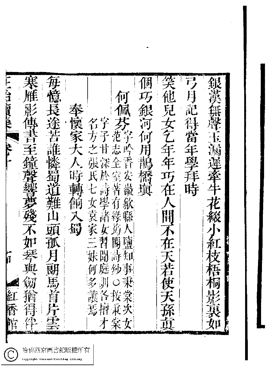 | 原書: 國朝閨秀正始續集﹕十卷﹐附錄﹕一卷﹐補遺﹕一卷﹐輓詞﹕一卷(清惲珠輯) |