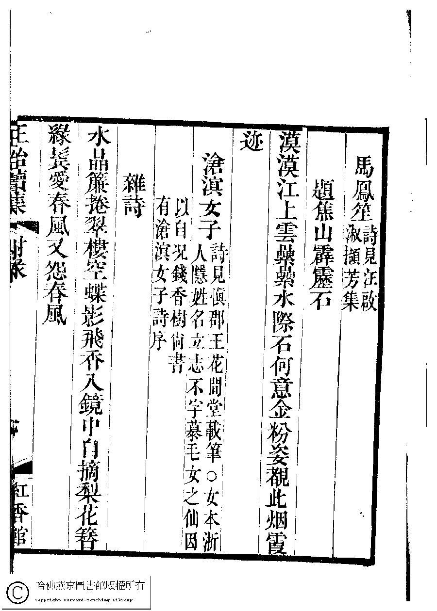 | 原書: 國朝閨秀正始續集﹕十卷﹐附錄﹕一卷﹐補遺﹕一卷﹐輓詞﹕一卷(清惲珠輯) |