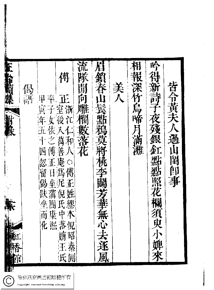 | 原書: 國朝閨秀正始續集﹕十卷﹐附錄﹕一卷﹐補遺﹕一卷﹐輓詞﹕一卷(清惲珠輯) |