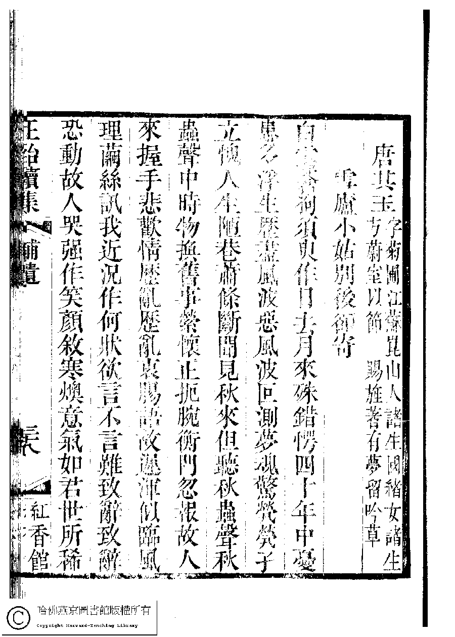 | 原書: 國朝閨秀正始續集﹕十卷﹐附錄﹕一卷﹐補遺﹕一卷﹐輓詞﹕一卷(清惲珠輯) |