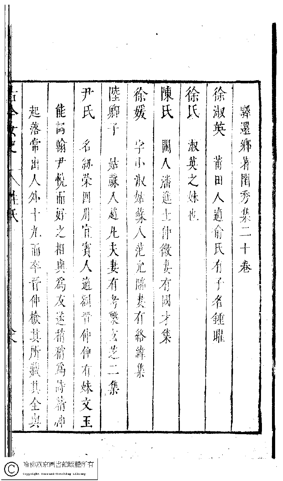 | 原書: 古今女史﹕十二卷﹐詩集﹕八卷﹐附姓氏字里詳節﹕一卷(明趙世杰輯) |