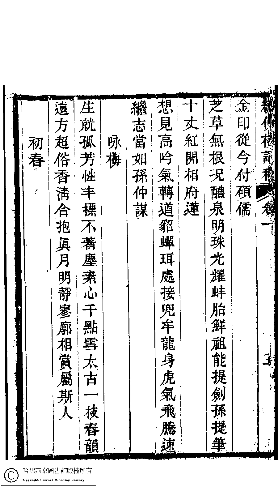 | (PRINT FRIENDLY VERSION) 繡佛樓詩稿﹕二卷(清錢守璞撰)。清同治八年(1869)刻本。 ![]() 頁碼 : 1.5b | 点 击 放 大 | 返回 |