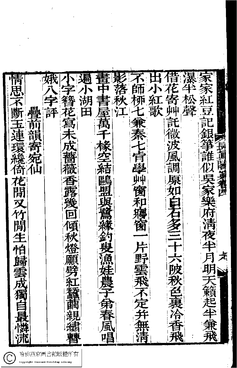 | (PRINT FRIENDLY VERSION) 長真閣集﹕七卷(清席佩蘭撰)。光緖十七年(1891)强氏南皋草廬刻本。 ![]() 頁碼 : 4.7a | 点 击 放 大 | 長真閣集﹕七卷(清席佩蘭撰)。光緖十七年(1891)强氏南皋草廬刻本。![]() 頁碼 : 4.6b | 点 击 放 大 | 返回 |