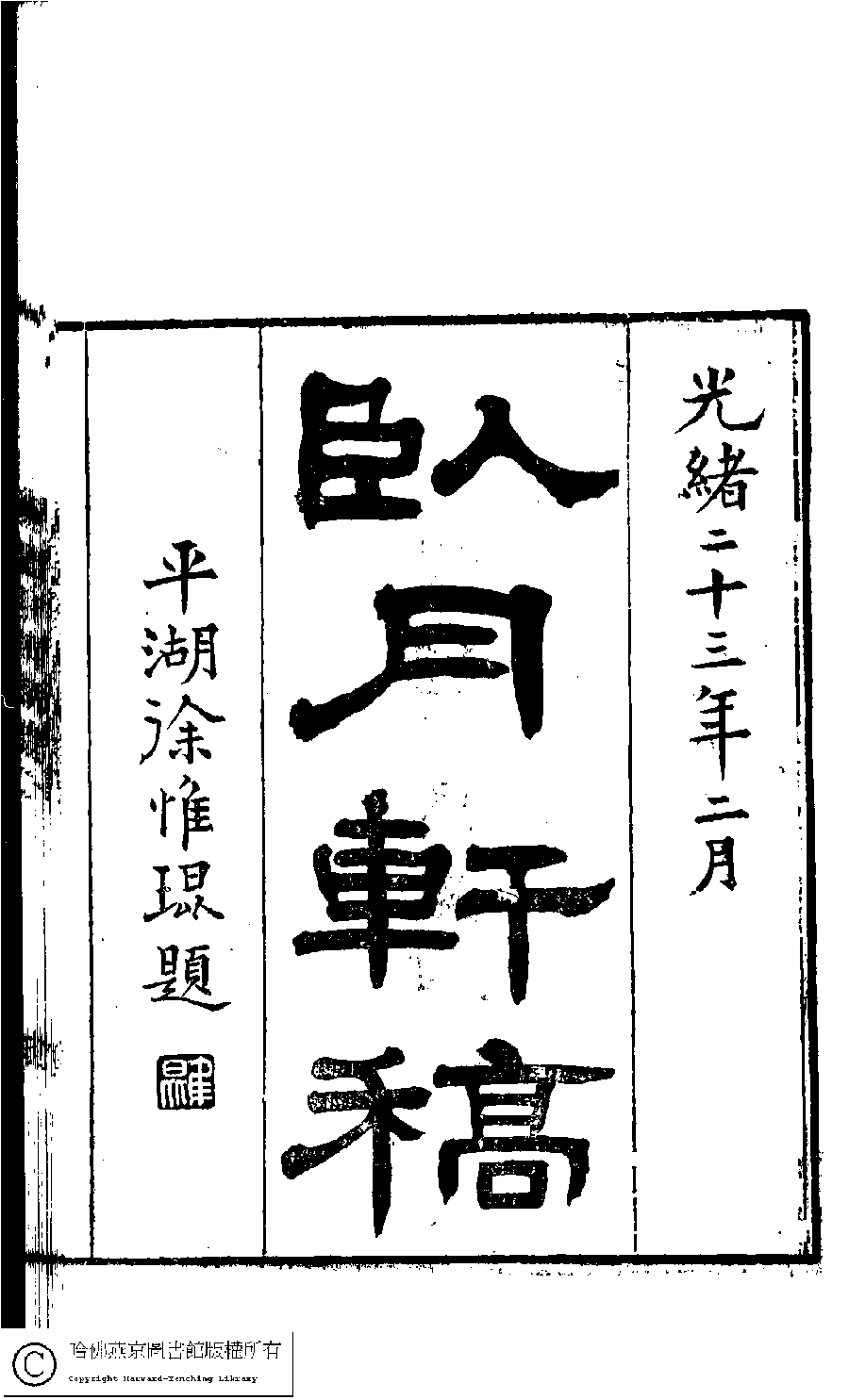 臥月軒稿﹕三卷(清顧若璞撰)。光緒嘉惠堂丁氏刻本。