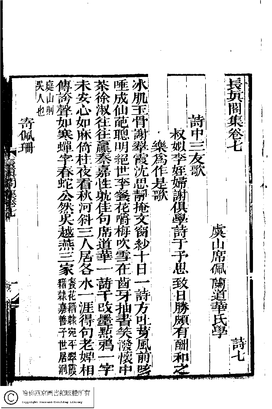 | 原書: 長真閣集﹕七卷(清席佩蘭撰) |