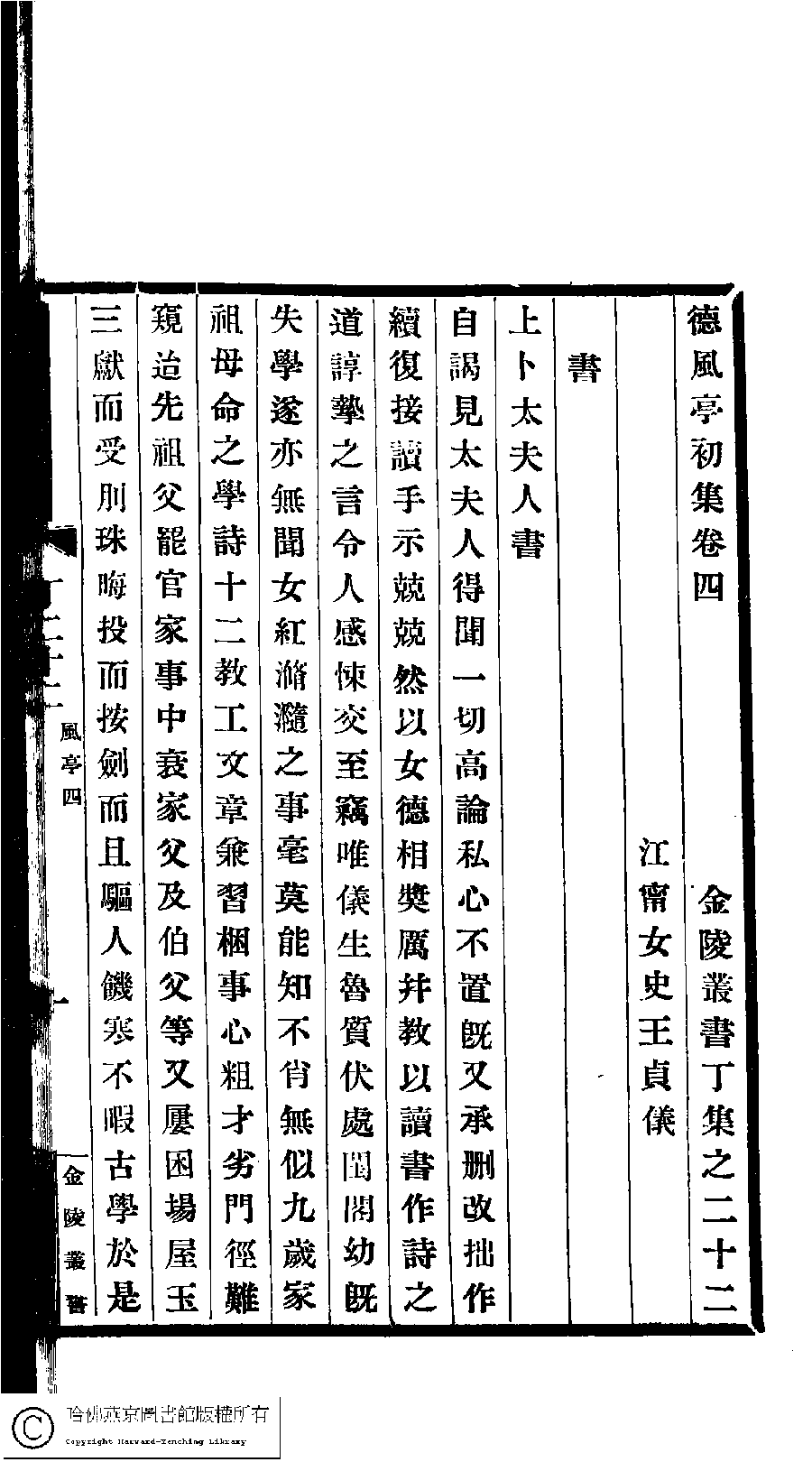 德風亭初集﹕十三卷(清王貞儀撰)。民國五年(1916)蔣氏[國榜]愼脩書屋校印本。