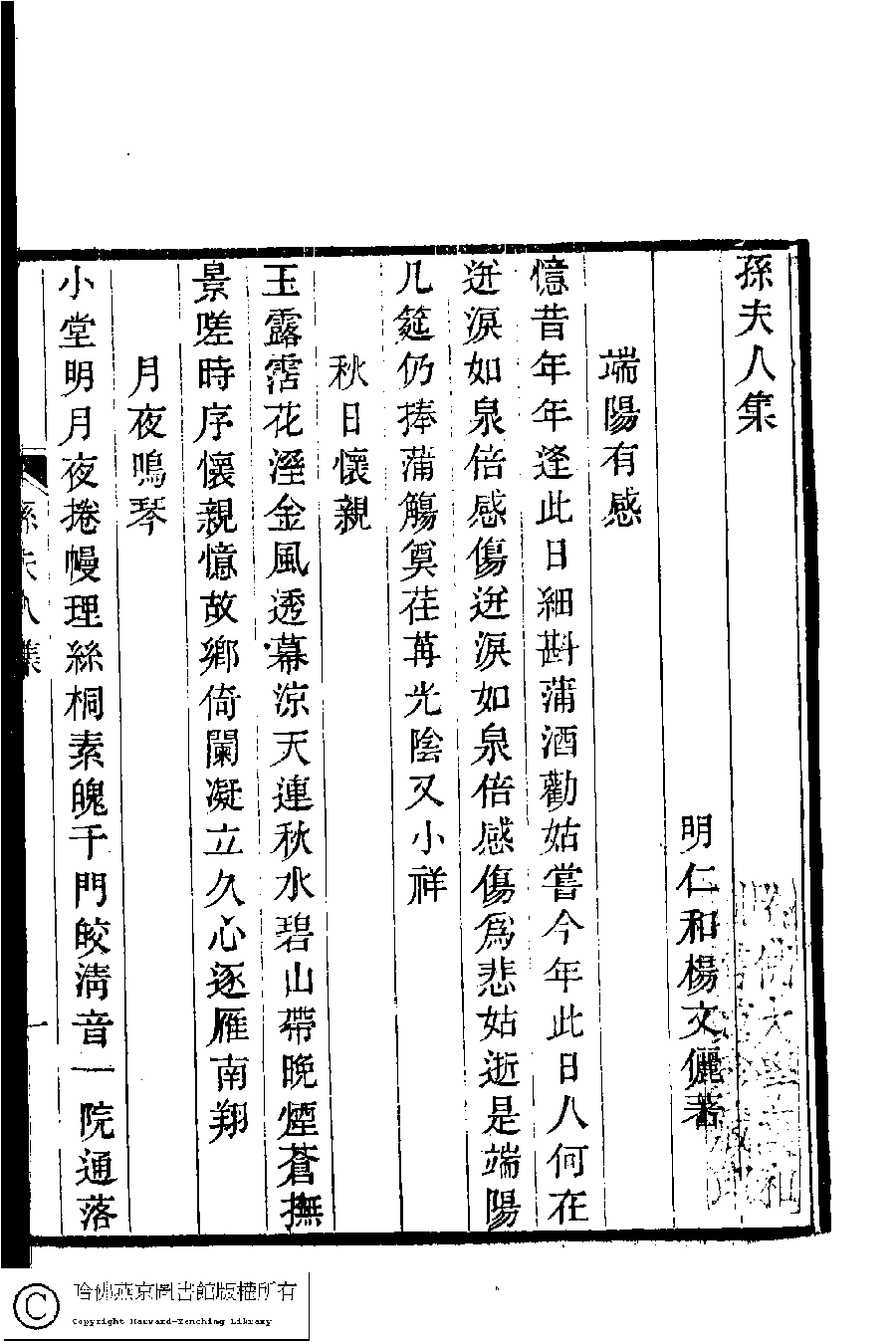 | 原書: 孫夫人集﹕一卷(明楊文儷撰) |