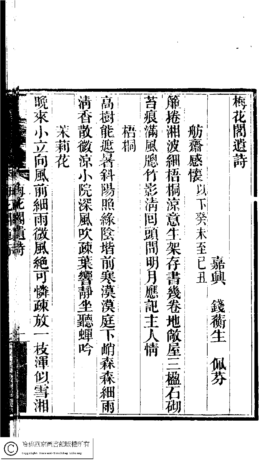 | 原書: 梅花閣遺詩﹕一卷(清錢蘅生撰) |