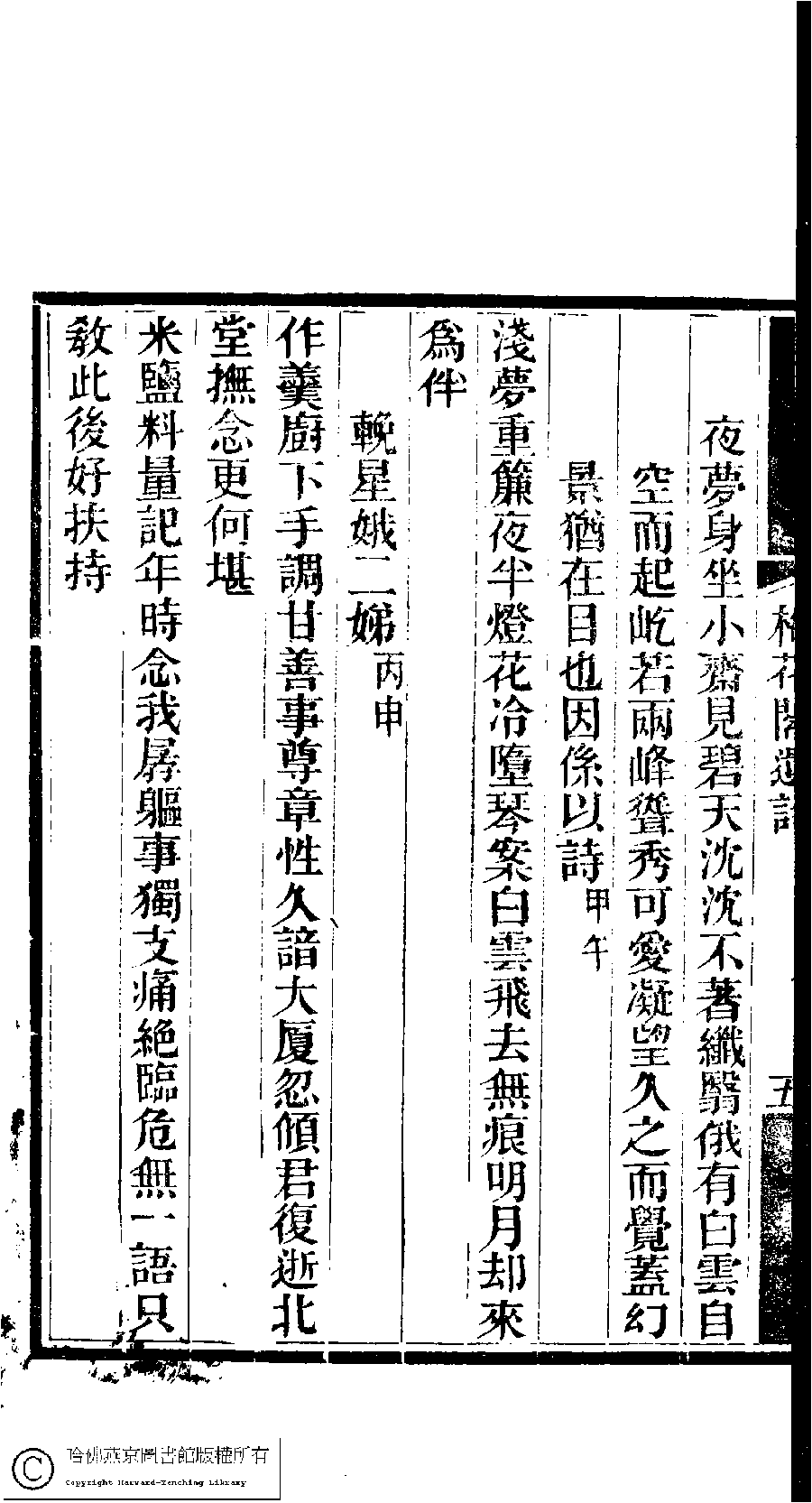 | (PRINT FRIENDLY VERSION) 梅花閣遺詩﹕一卷(清錢蘅生撰)。清同治十年(1871)平湖張氏刻本。 ![]() 頁碼 : 6a | 点 击 放 大 | 梅花閣遺詩﹕一卷(清錢蘅生撰)。清同治十年(1871)平湖張氏刻本。![]() 頁碼 : 5b | 点 击 放 大 | 返回 |