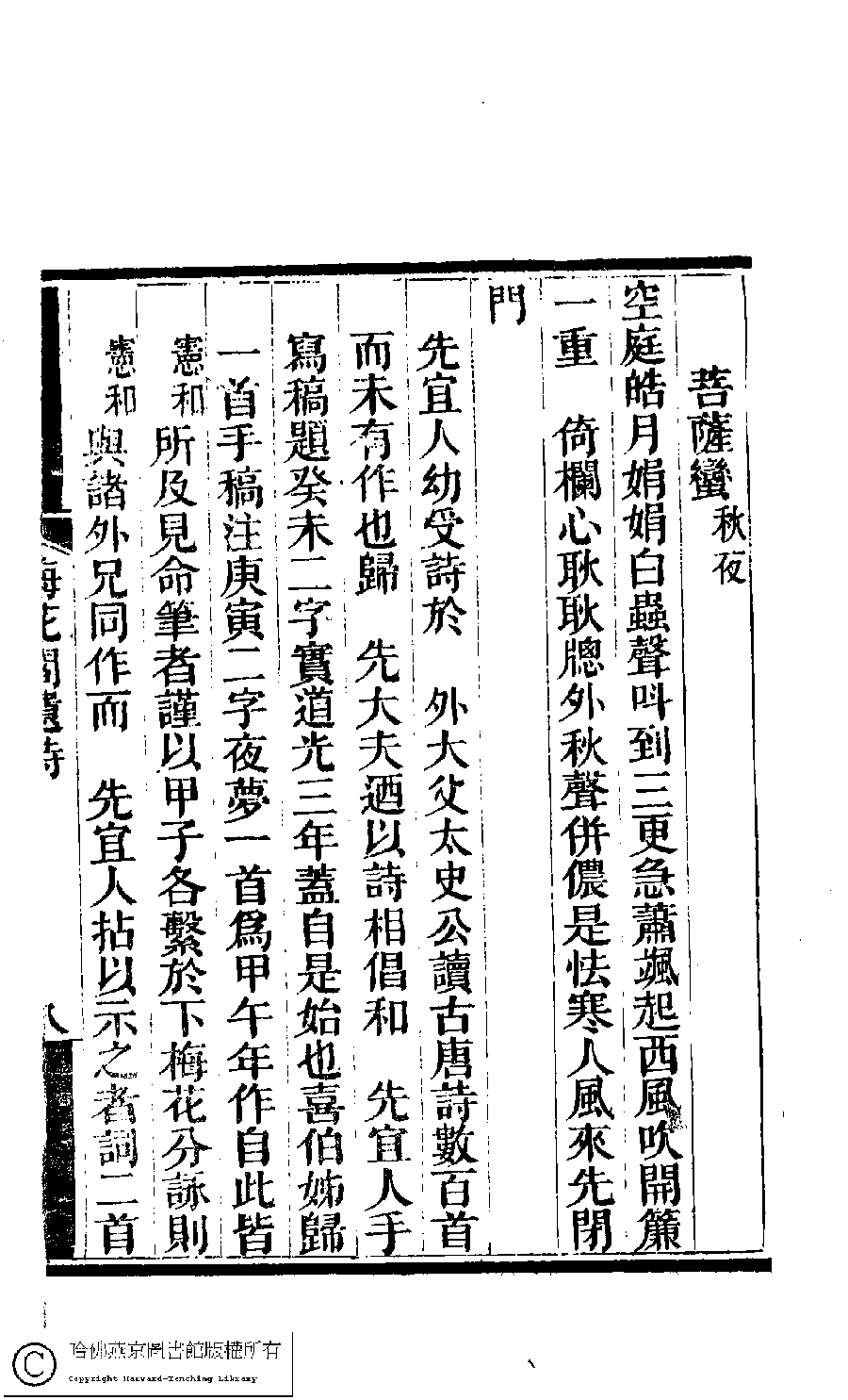 | (PRINT FRIENDLY VERSION) 梅花閣遺詩﹕一卷(清錢蘅生撰)。清同治十年(1871)平湖張氏刻本。 ![]() 頁碼 : 8b | 点 击 放 大 | 梅花閣遺詩﹕一卷(清錢蘅生撰)。清同治十年(1871)平湖張氏刻本。![]() 頁碼 : 8a | 点 击 放 大 | 返回 |