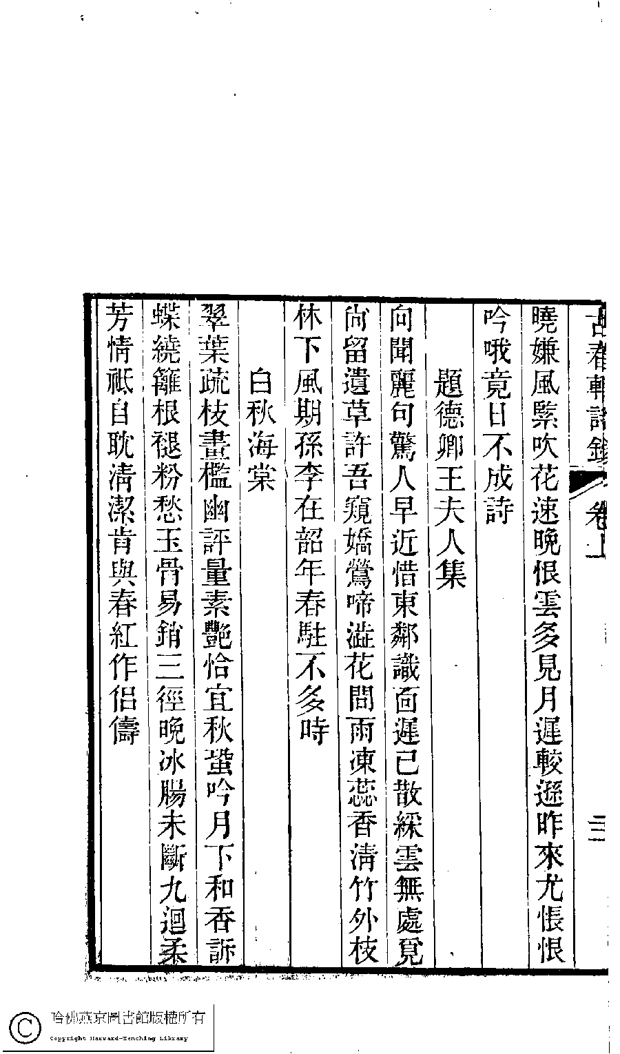 | (PRINT FRIENDLY VERSION) 古春軒詩鈔﹕二卷(清梁德繩撰)。清道光二十九年(1849)刻本。 ![]() 頁碼 : 上.21b | 点 击 放 大 | 古春軒詩鈔﹕二卷(清梁德繩撰)。清道光二十九年(1849)刻本。![]() 頁碼 : 上.21a | 点 击 放 大 | 返回 |