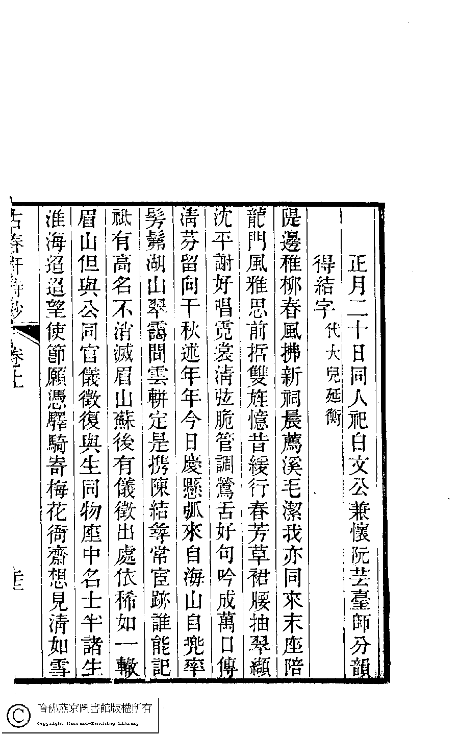 詩詞 [正月二十日同人祀白文公兼懷阮芸臺師分韻得結字﹕代大兒延衡]