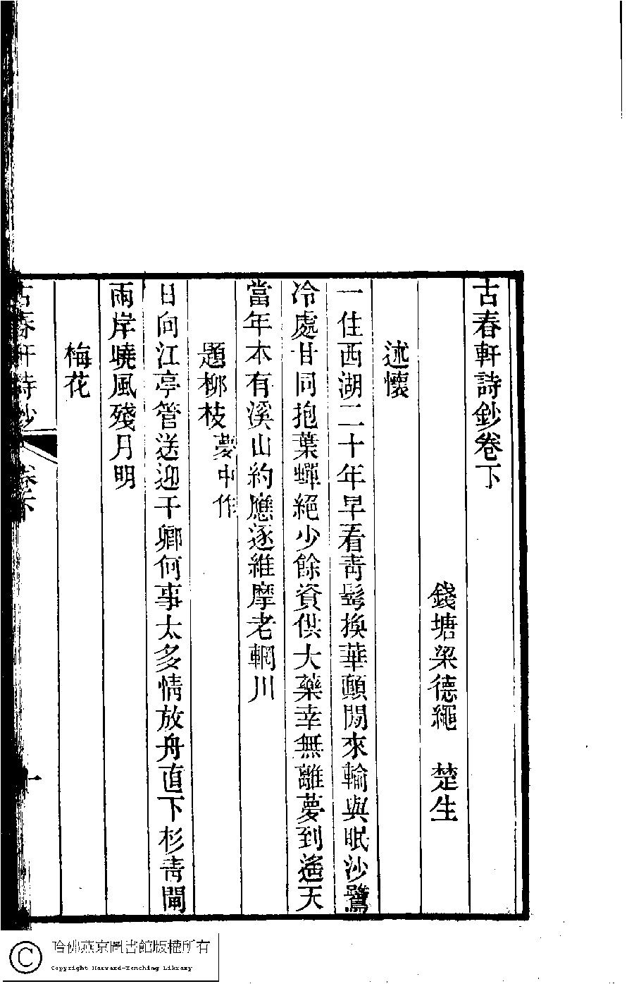 | 原書: 古春軒詩鈔﹕二卷(清梁德繩撰) |