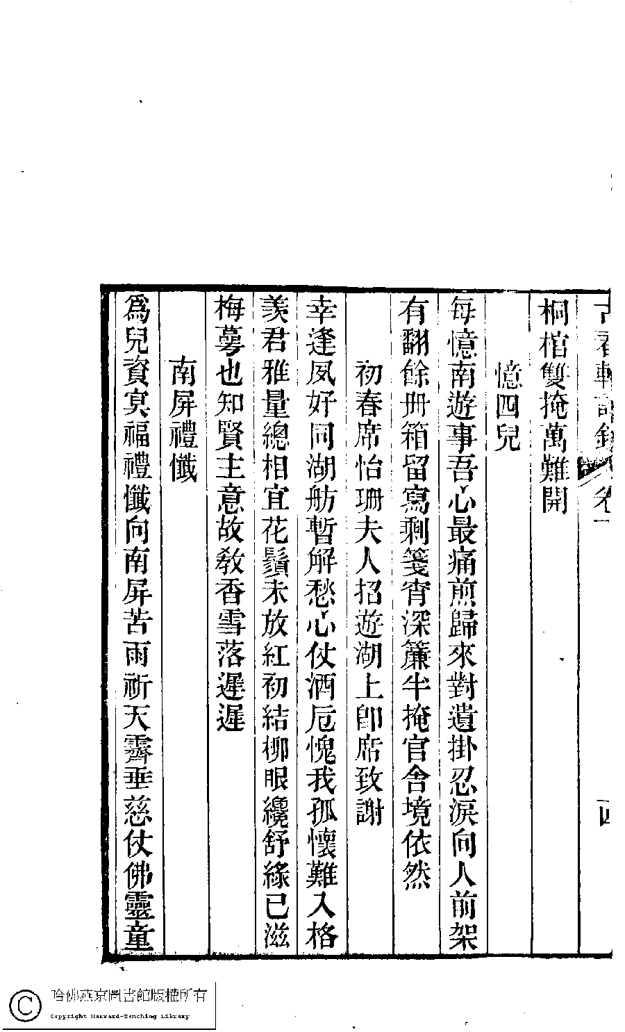 | (PRINT FRIENDLY VERSION) 古春軒詩鈔﹕二卷(清梁德繩撰)。清道光二十九年(1849)刻本。 ![]() 頁碼 : 下.14b | 点 击 放 大 | 古春軒詩鈔﹕二卷(清梁德繩撰)。清道光二十九年(1849)刻本。![]() 頁碼 : 下.14a | 点 击 放 大 | 返回 |