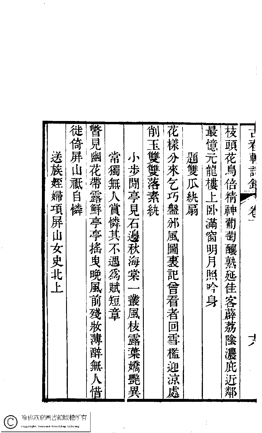 | (PRINT FRIENDLY VERSION) 古春軒詩鈔﹕二卷(清梁德繩撰)。清道光二十九年(1849)刻本。 ![]() 頁碼 : 下.18b | 点 击 放 大 | 古春軒詩鈔﹕二卷(清梁德繩撰)。清道光二十九年(1849)刻本。![]() 頁碼 : 下.18a | 点 击 放 大 | 返回 |