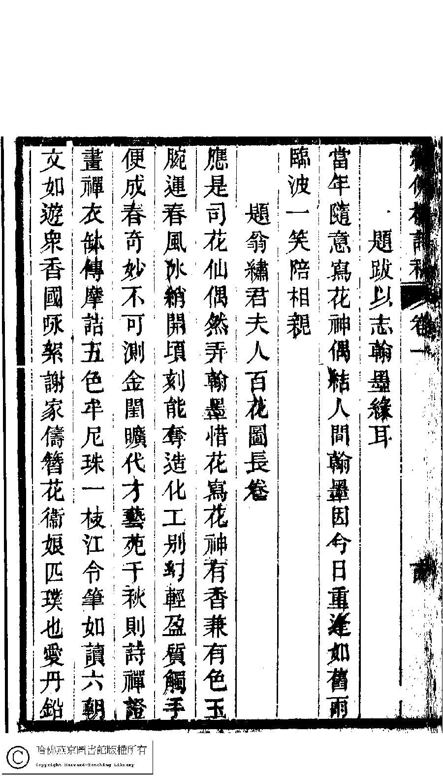 詩詞 [題少日所畫花卉此余十五六時作也亦不復記矣今夏有閨友裝潢成軸持來特命加墨展視之筆墨疏陋腕力拙弱如小兒學步殊堪失笑拈一絕句誌之余既感筆墨之荒蕪復歎歲月之飄忽雪泥鴻爪陳跡猶新儻他日重逢又當題跋以志翰墨緣耳]