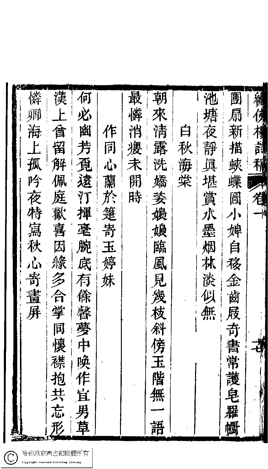 | (PRINT FRIENDLY VERSION) 繡佛樓詩稿﹕二卷(清錢守璞撰)。清同治八年(1869)刻本。 ![]() 頁碼 : 1.17b | 点 击 放 大 | 返回 |