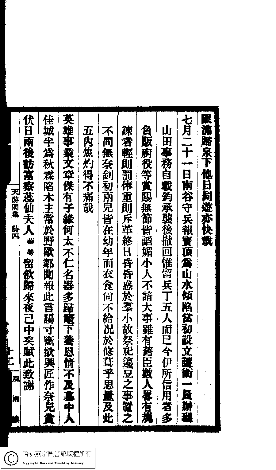 | (PRINT FRIENDLY VERSION) 天游閣集﹕五卷﹐詩補﹕一卷(清顧太清撰)。宣統二年(1910)順德鄧氏刊本。 ![]() 頁碼 : 4.12b | 点 击 放 大 | 天游閣集﹕五卷﹐詩補﹕一卷(清顧太清撰)。宣統二年(1910)順德鄧氏刊本。![]() 頁碼 : 4.12a | 点 击 放 大 | 返回 |