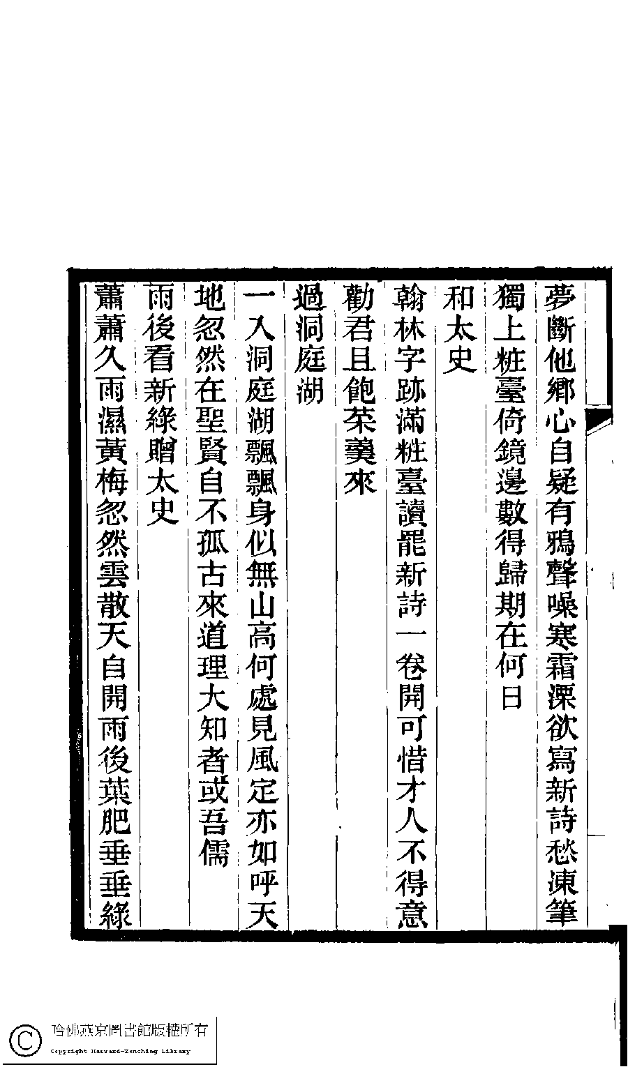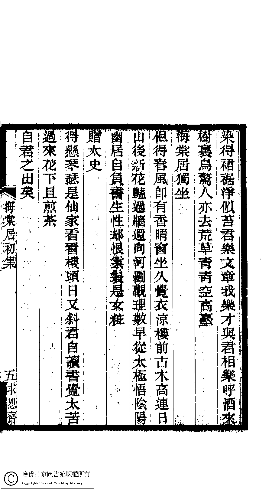 | (PRINT FRIENDLY VERSION) 海棠居詩集(清姚淑撰)。民國十一年(1922)南林劉氏刻本 ![]() 頁碼 : 5a | 点 击 放 大 | 海棠居詩集(清姚淑撰)。民國十一年(1922)南林劉氏刻本![]() 頁碼 : 4b | 点 击 放 大 | 返回 |