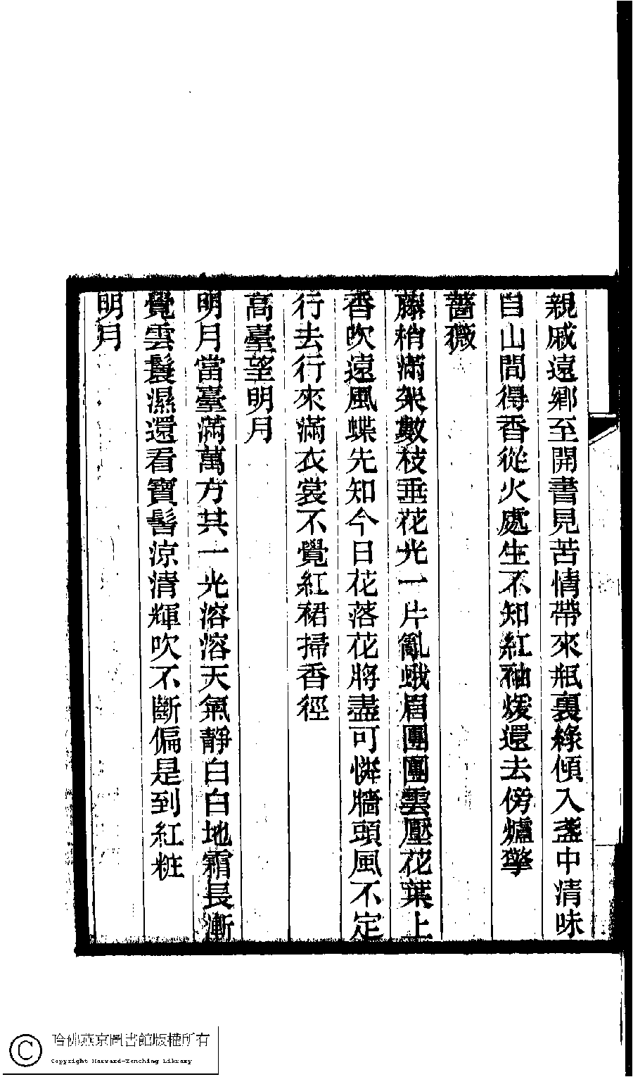 | (PRINT FRIENDLY VERSION) 海棠居詩集(清姚淑撰)。民國十一年(1922)南林劉氏刻本 ![]() 頁碼 : 8a | 点 击 放 大 | 海棠居詩集(清姚淑撰)。民國十一年(1922)南林劉氏刻本![]() 頁碼 : 7b | 点 击 放 大 | 返回 |