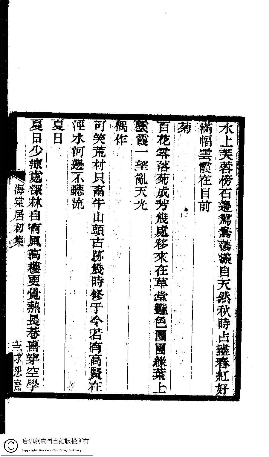 海棠居詩集(清姚淑撰)。民國十一年(1922)南林劉氏刻本