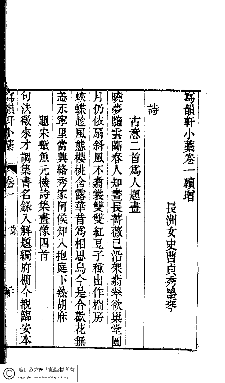 寫韻軒小藁﹕二卷續增卷(清曹貞秀撰)。清嘉慶二十年(1815)增刋本。