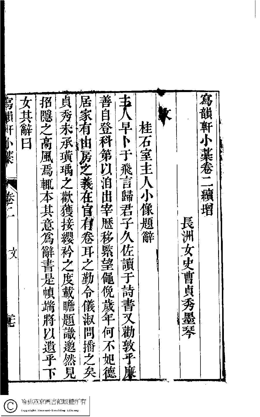 寫韻軒小藁﹕二卷續增卷(清曹貞秀撰)。清嘉慶二十年(1815)增刋本。