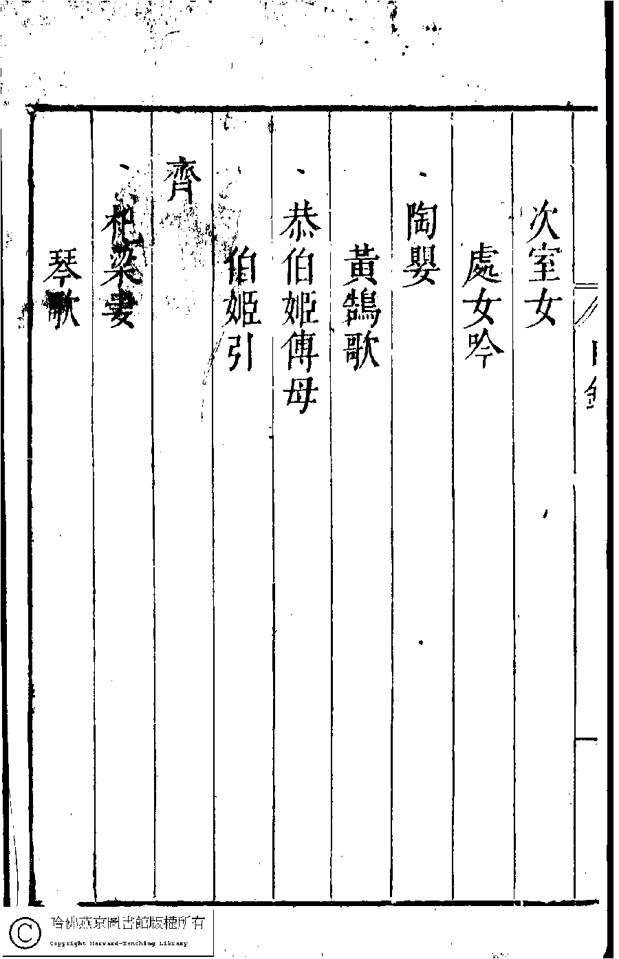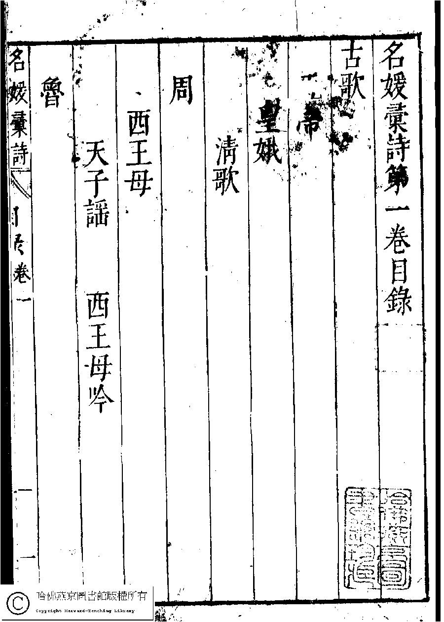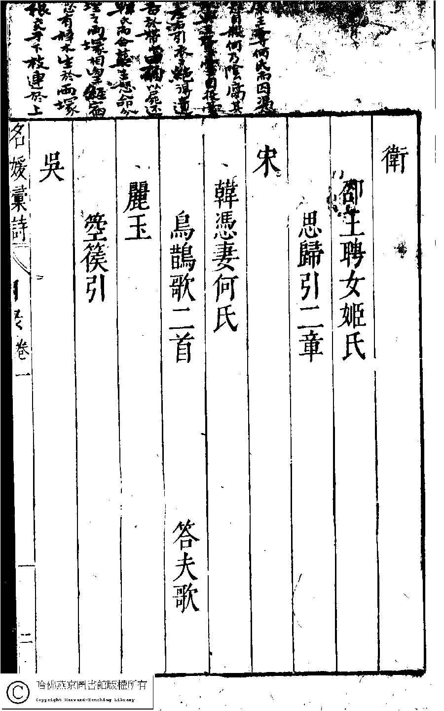 詩詞 [名媛彙詩第一卷目錄(古歌)]