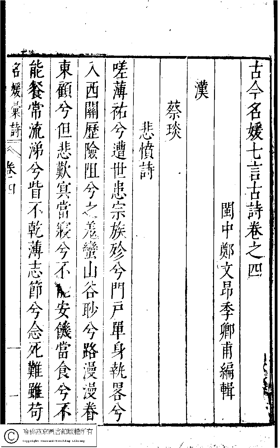 名媛彙詩﹕二十卷(明鄭文昂編)