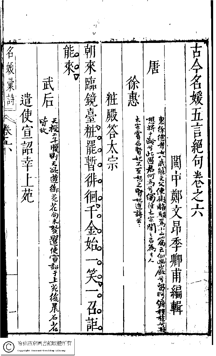| 原書: 名媛彙詩﹕二十卷(明鄭文昂編) |