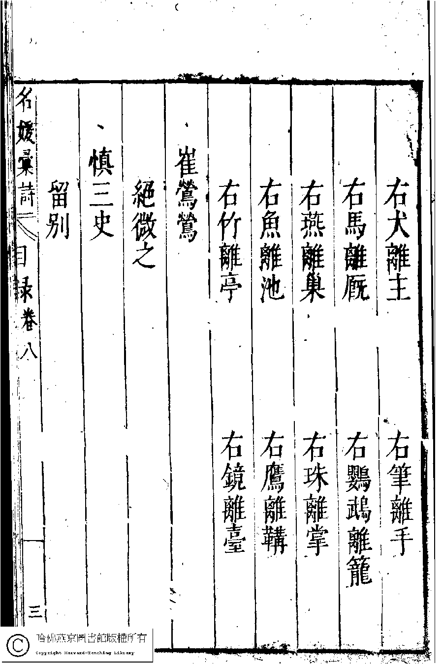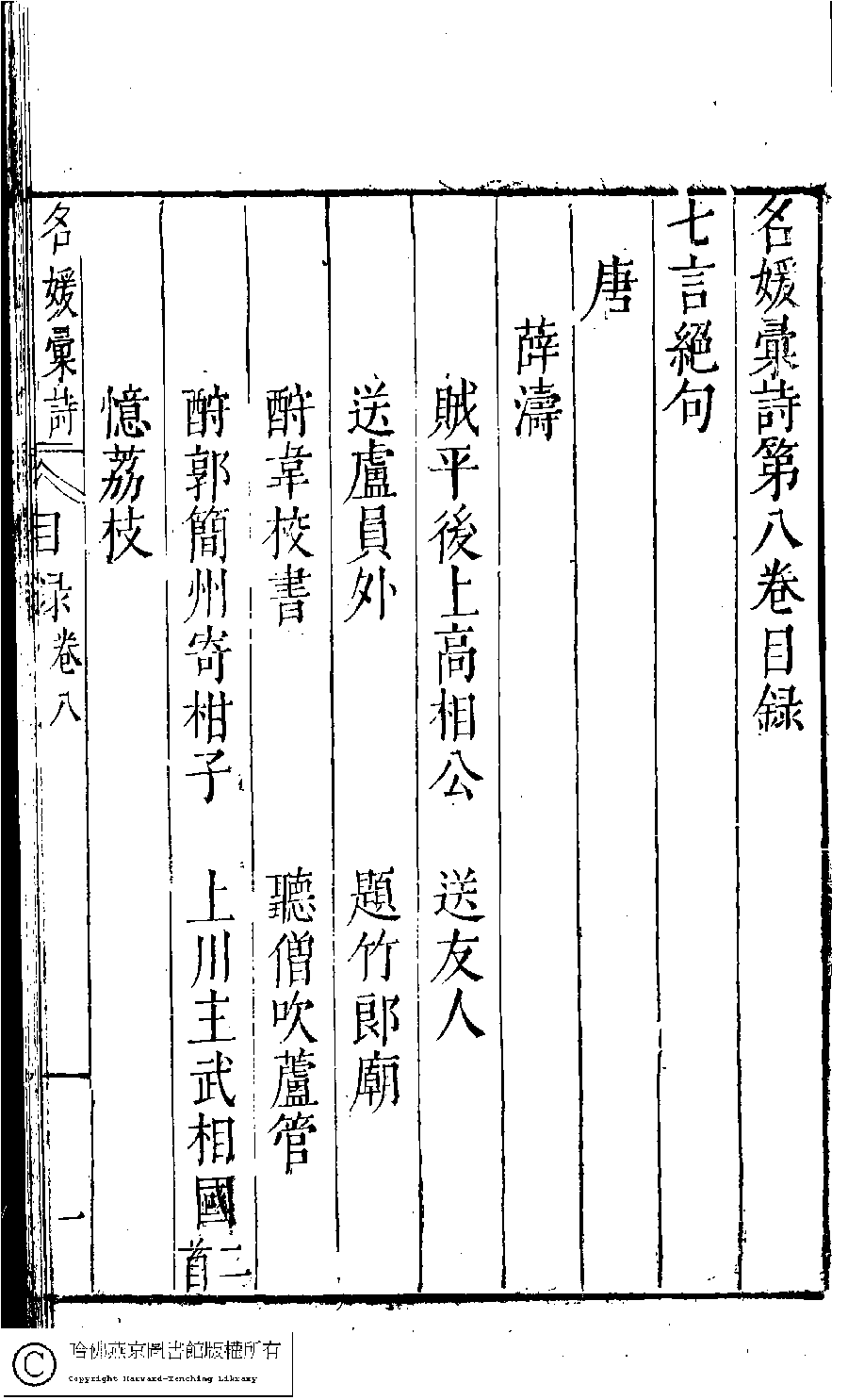 詩詞 [名媛彙詩第八卷目錄(七言絕句)]